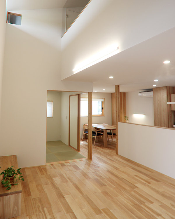 勾配天井、リビング吹抜け