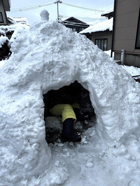 半ば強引にかまくらを作りました、子供1人やっと入れるサイズでやっとかっとでした(;´・ω・)